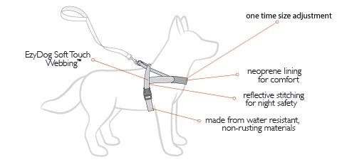 Our Quick Fit™ sport dog harness is designed to fit dogs of all sizes comfortably and with full control. This lightweight one-click harness is loved by dog owners and dogs alike.