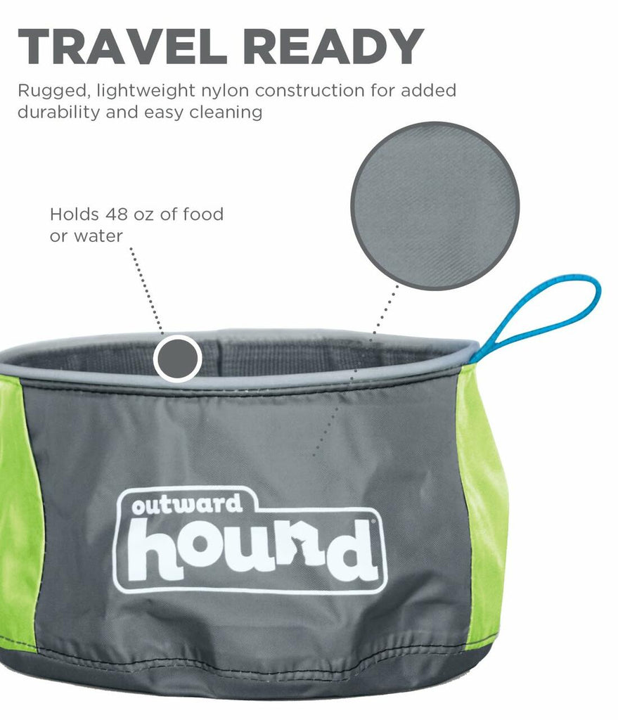 • hydration on-the-go: The Port-A-Bowl by Outward Hound is your go-to solution for keeping your dog hydrated no matter where you roam. Made from a nylon material for added durability and longevity.